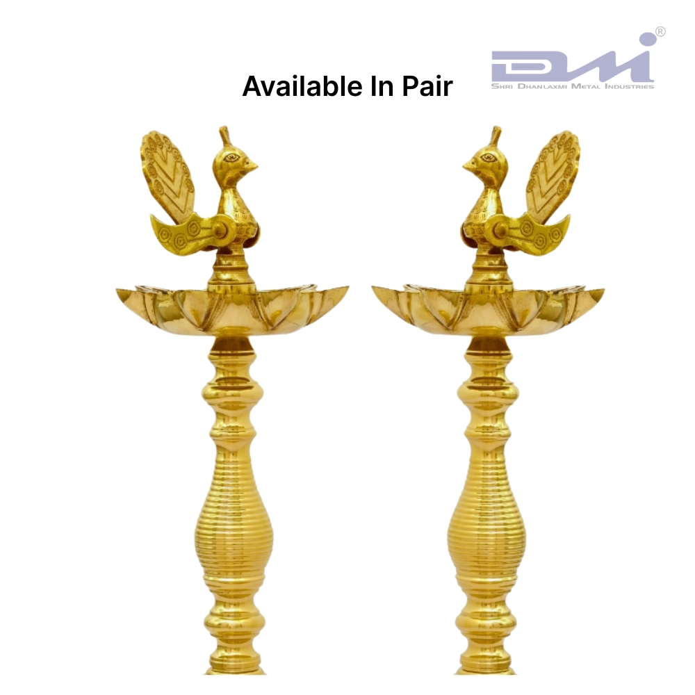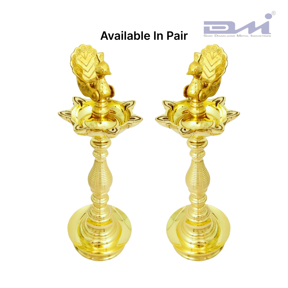 Home Brass Pooja Collection 7 Faced Ethnic Brass Samai Peacock Design – Pair